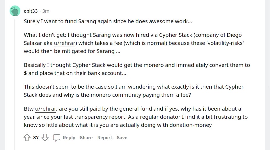 2/ For those that don't know, Diego is the community manager for Monero. You can catch him in their main Telegram (under the name 'rehrar'). He makes $7k/month directly from the community.