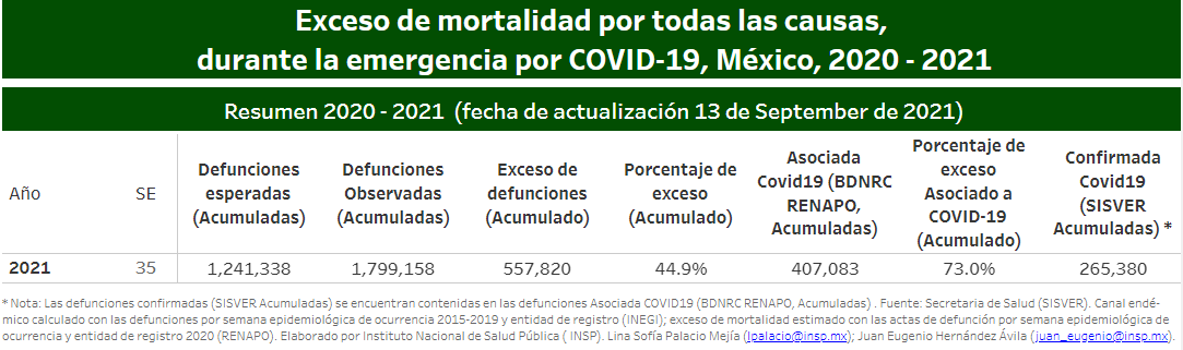 6/ Estas 407,083 muertes "asociadas a COVID19" al corte del 4 de septiembre son defunciones de personas en cuyas actas de defunción aparece "COVID19", "SARS-CoV-2" o "coronavirus" como causa de muerte. Son defunciones oficiales por COVID19 en México.