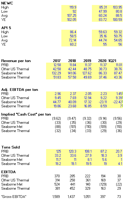 1st let's start with the PRB, margins in decline, volumes in decline, best case, you hold serve on volumes, maybe get back to ~$260MM EBITDA assuming peak margins in the segment from $194MM in '20, but w/e...