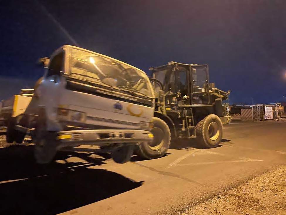 A suspected vehicle-borne improvised explosive device is moved by forklift to a vacant area at Hamid Karzai International Airport during the evacuation last month. (Undated U.S. Air Force photo)