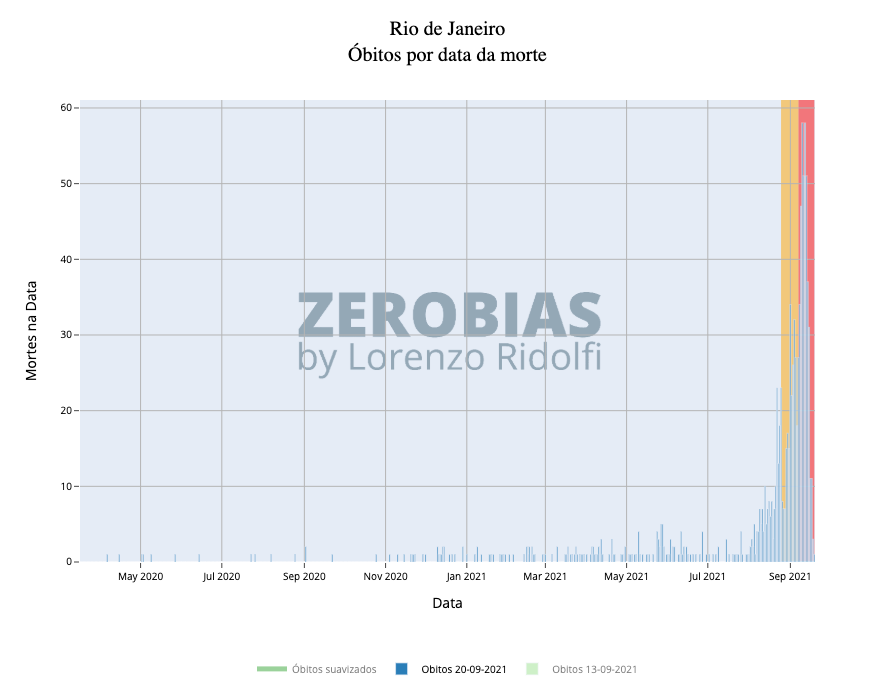 4/ Essa verificação é feita isolando-se apenas os óbitos lançados na última edição da SRAG, do dia 20/9, conforme o gráfico abaixo exemplifica para o estado do RJ.