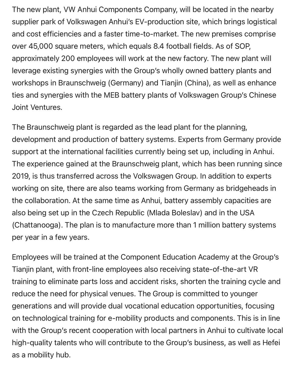With an area of over 45,000 square meters, the plant will be located next to the production facilities of Volkswagen Anhui, Volkswagen’s first majority-owned joint venture for all-electric vehicles