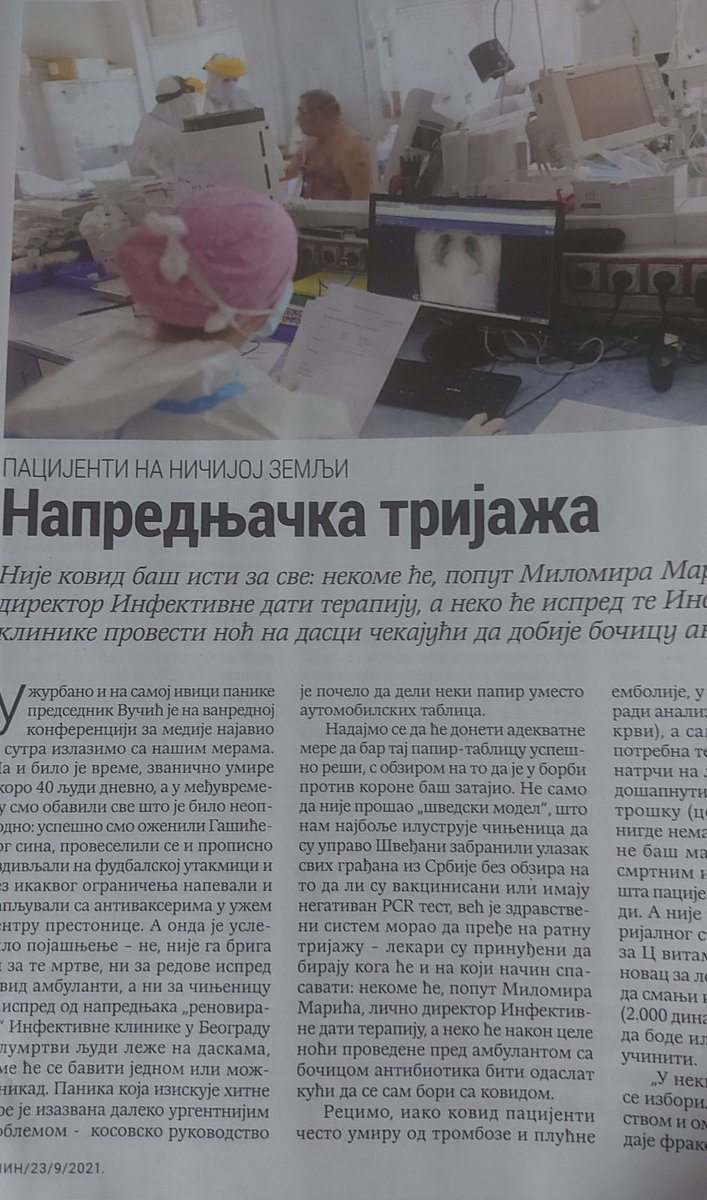 6. „шведски модел“, што нам најбоље илуструје чињеница да су управо Швеђани забранили улазак свих грађана из Србије без обзира на то да ли су вакцинисани или имају негативан PCR тест, већ је здравствени систем морао да пређе на ратну тријажу – лекари су принуђени да бирају кога⬇️