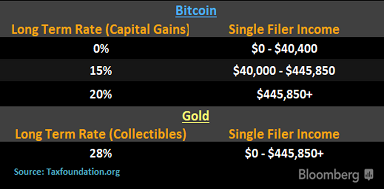 An undisputed victory for U.S. Bitcoin investors on the Bitcoin vs Gold debate is the tax rate situation. 4/5