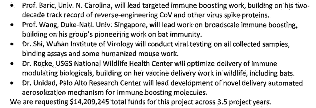 8/ The Wuhan Institute of Virology was also planning for the aerosol delivery of coronavirus spike proteins into native bat populations. The idea of vaccinating bats in the wild using aerosolized delivery of spike proteins is sci-fi level crazy and was never previously disclosed.