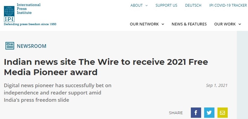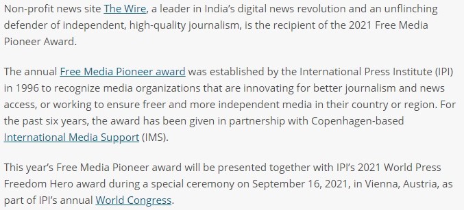 The Wire received some award for god knows what from some group called International Press Institute. Look who the IPI's donors are hahahahaha. "Independent media" LMAO