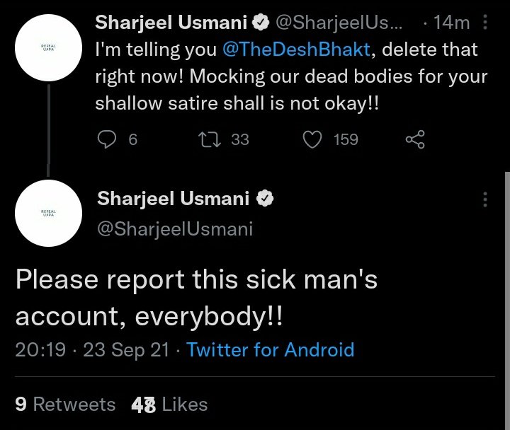 Update: Despite grave pressure, Akash Banerjee has refused to relent. Sharjeel Usmani is frothing at the mouth tweeting the same words in reply tweet as well as in separate tweet to call his minions to join the battle. Banerjee is alone but he continues to battle hard.