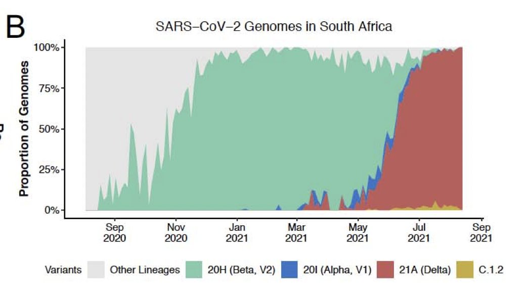 Although genomic surveillance in Africa remains heterogeneous there is good evidence that Delta has also rapidly replaced Beta in many other African countries - see our dashboard in Africa - genomics.africa/sars-cov-2-das… from previous paper (Wilkinson et al Science 2021).
