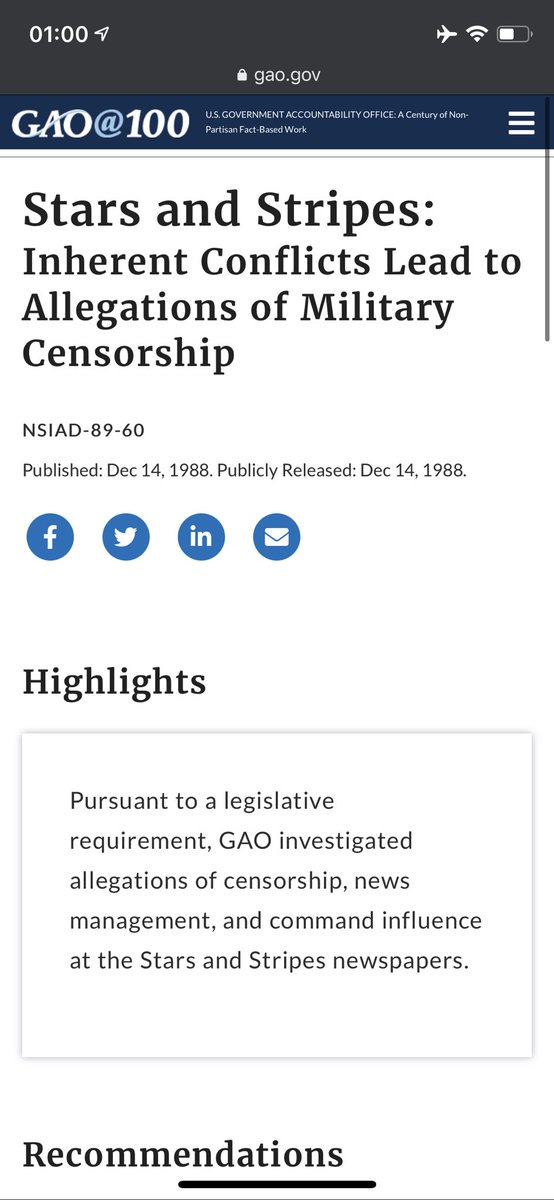 I’m not sure I should tweet this right now. I don’t know that I have the stamina to get through all the nuance. But anyway, let’s talk about this @PentagonPresSec claim that Stars and Stripes enjoys “complete editorial independence” and is so valuable for informing the troops.