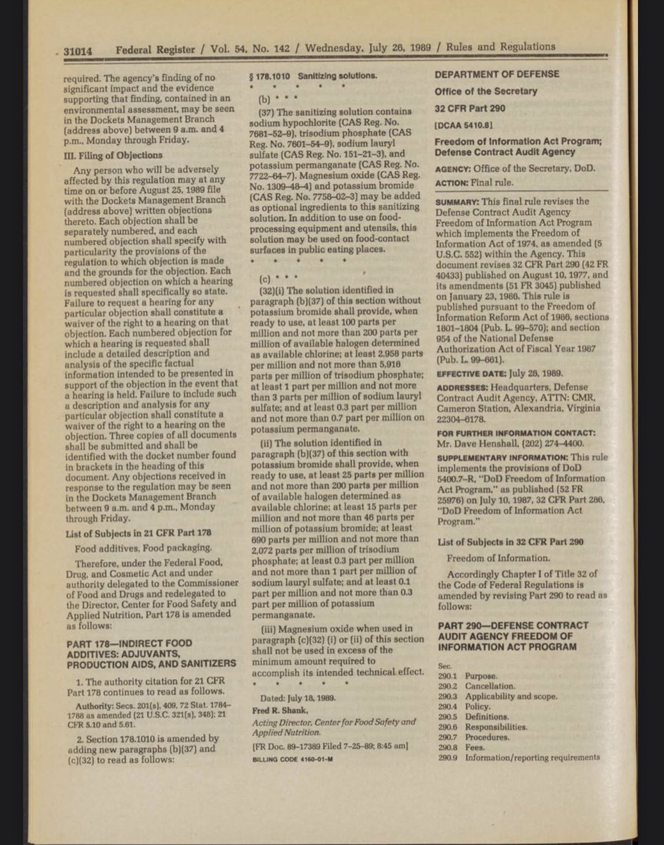 A couple last notes before I fall asleep. DoD’s policy re: Stars and Stripes reporters being disqualified from using FOIA is arguably a substantive rule in that it imposes burdens, yet has never been published in the Federal Register or subject to public comment.