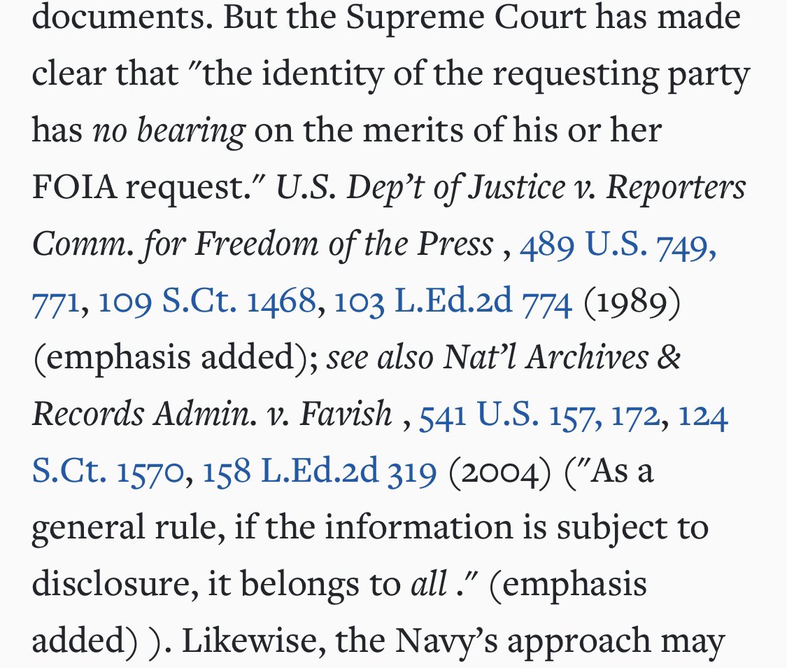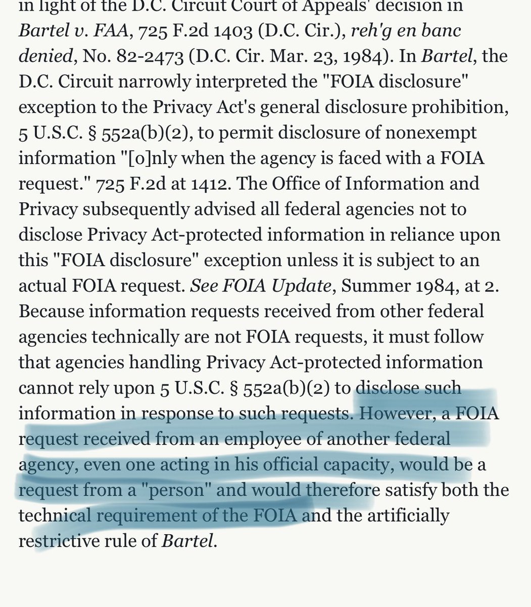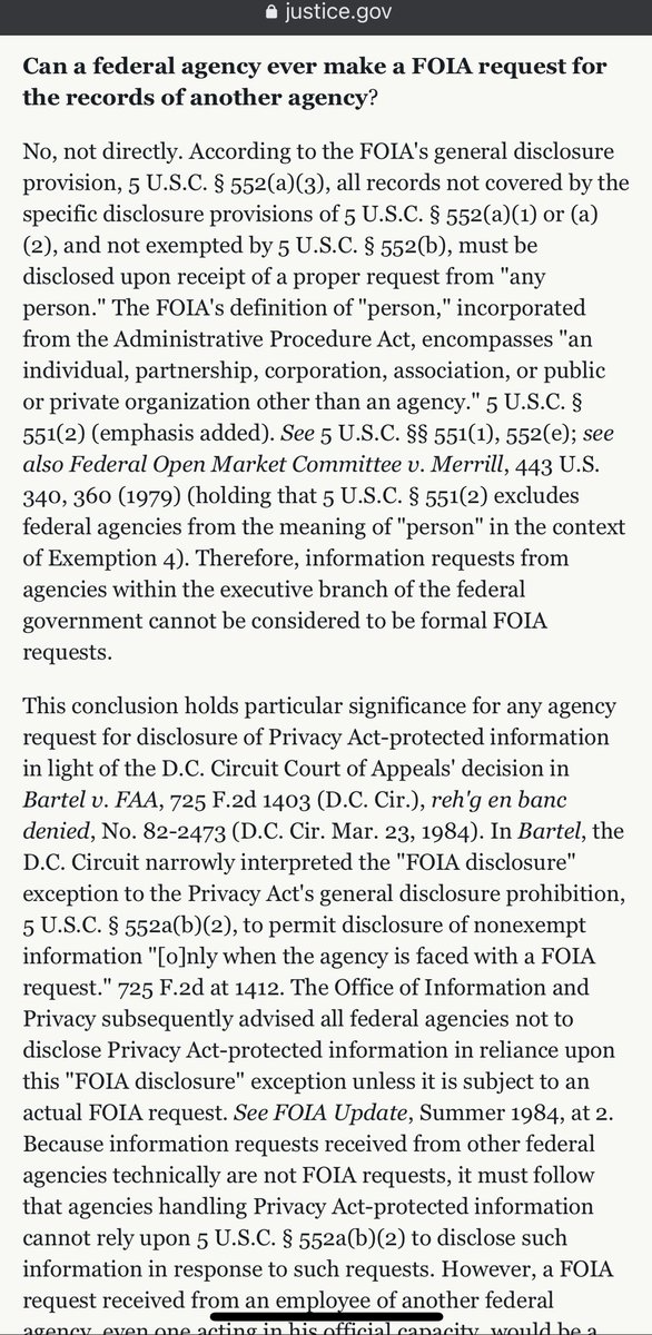 Actually, you have to be stupid or disingenuous to read the FREEDOM OF INFORMATION ACT as meant to LIMIT who can access records to only everyone but S&S reporters bc they’re such clear “representatives of a federal agency” and the definition of “person” excludes “agency.”