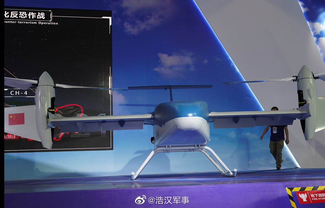 The first photographs of the newest Chinese reconnaissance and strike UAV CH-6 developed by the Chinese defense corporation China Aerospace Science and Technology Corporation (CASC) on the statics of the International Aviation and Space Salon Airshow China-2021.