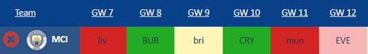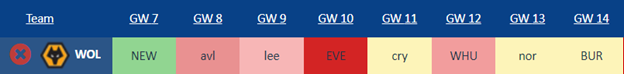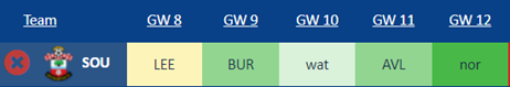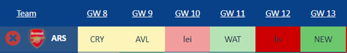 A good run of fixtures GW8-GW13 [apart from GW12]