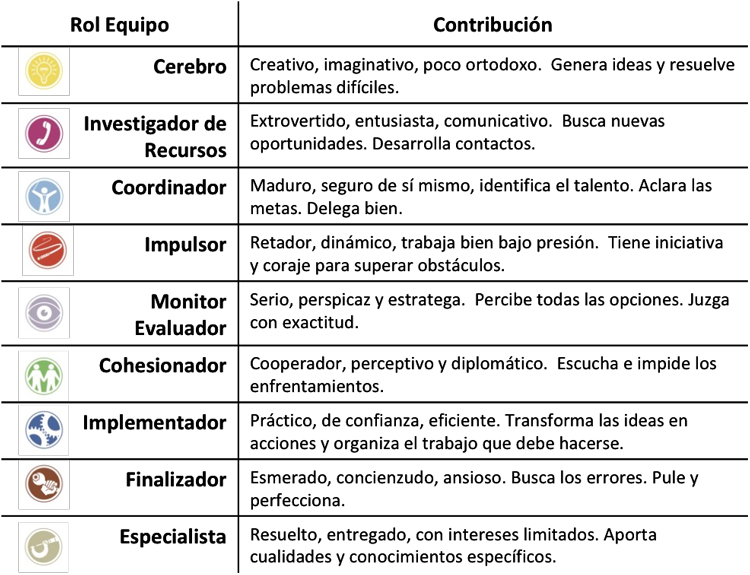 Además del rol funcional que los miembros de un equipo pudieran tener, Belbin identificó 9 roles según el papel que jugaban colaborando en el equipo.