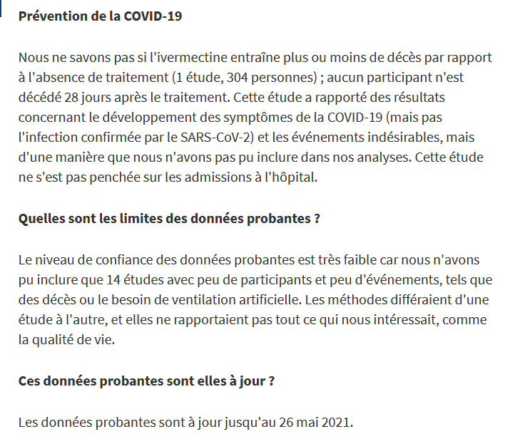 9/n Les revues ne peuvent pas conclure à une efficacité de l'ivermectine et notent la mauvaise qualité des études cochrane.org/fr/CD015017/HA…