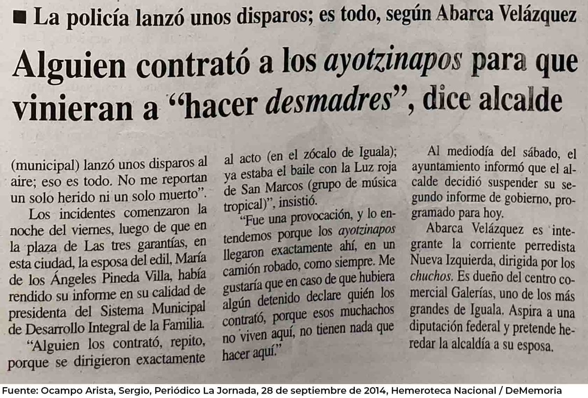 El alcalde de Iguala, José Luis Abarca, le restó importancia a lo ocurrido. El gobernador de Guerrero, Ángel Aguirre Rivero, se mantuvo en silencio y la Procuraduría local informó de la detención de una veintena de policías de Iguala y Cocula.