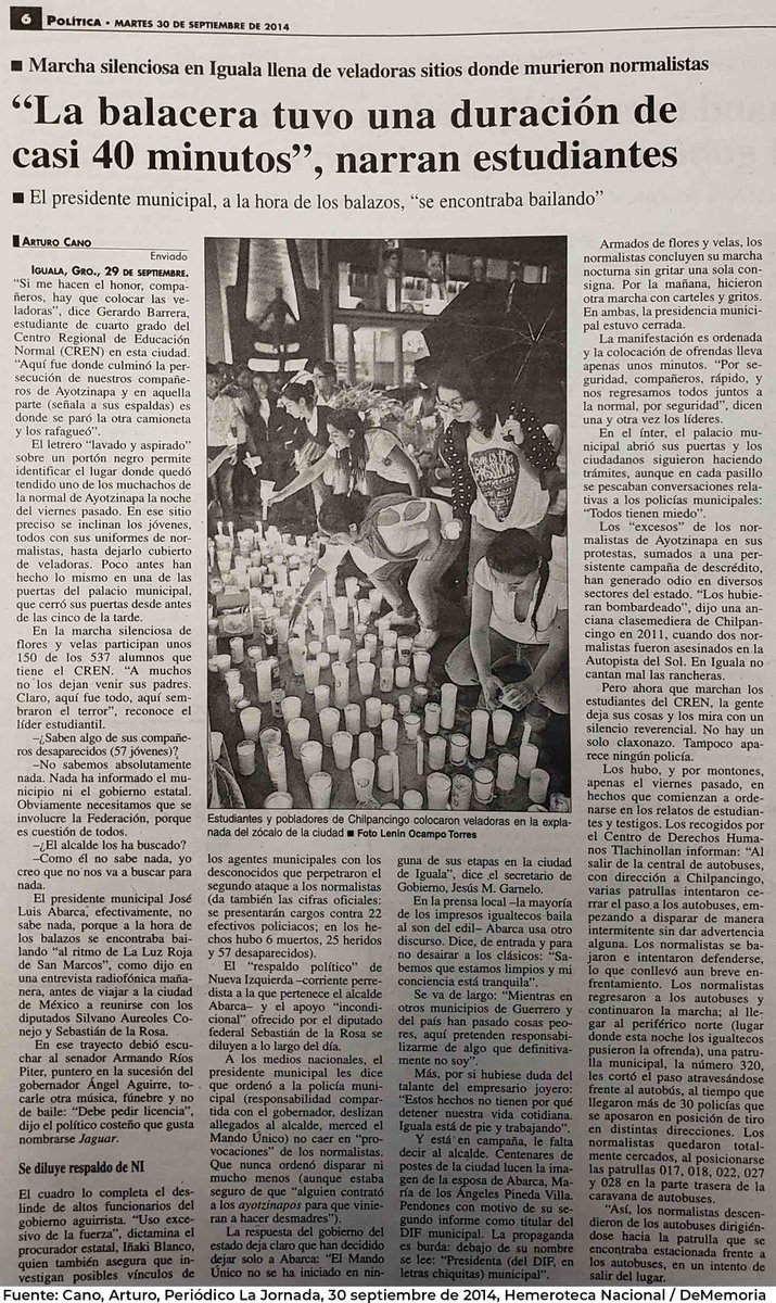 El primer parte oficial reportó la muerte de 6 personas, al menos 40 lesionados y más de 50 desaparecidos, con el correr de las horas se redujo hasta 43 el número de estudiantes de Ayotzinapa que no habían sido ubicados.