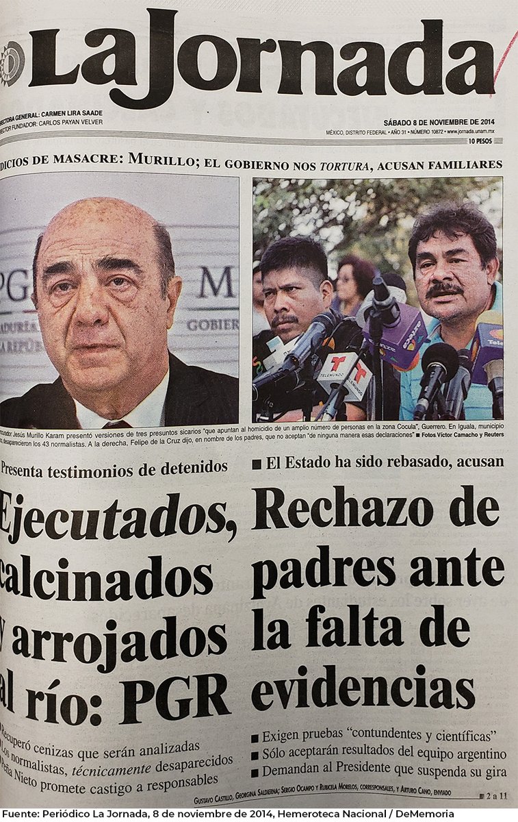 En noviembre de 2014, Murillo Karam ofreció un esbozo de lo que dos meses después fue llamada la ‘verdad histórica’. Luego de reunirse con los padres de los 43 desaparecidos, afirmó que los estudiantes fueron ejecutados e incinerados en el basurero municipal de Cocula.