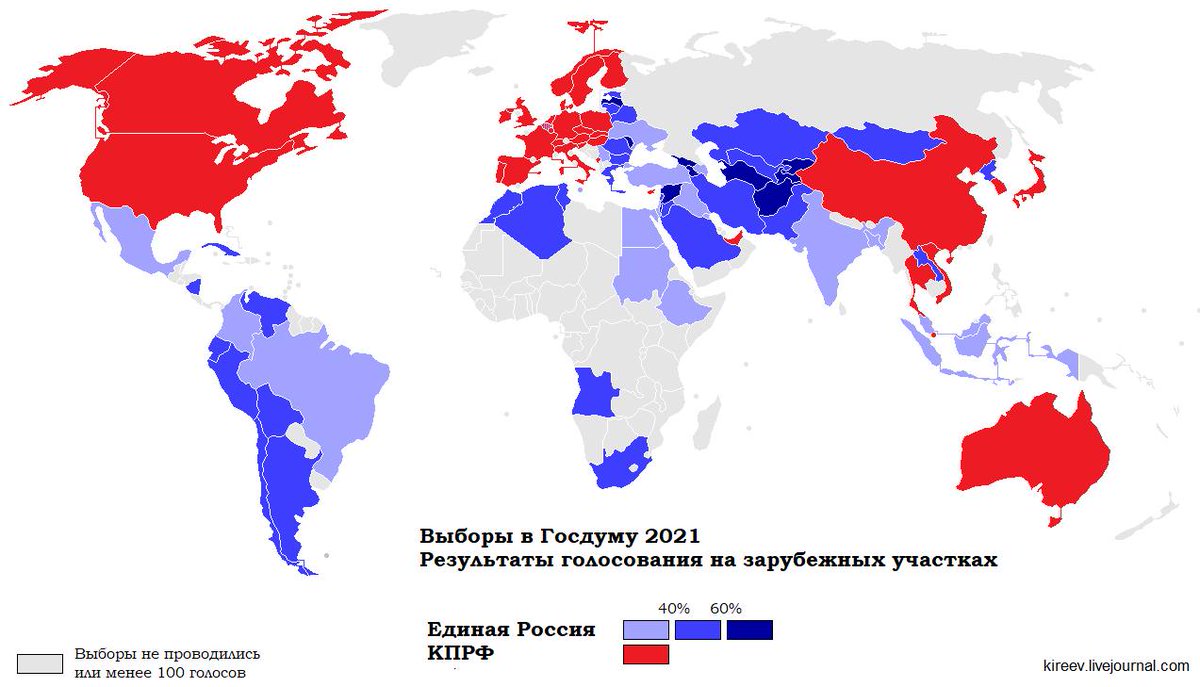 But why do Russians abroad vote for them? The opposition uses 'Smart Voting' procedure. When choosing whom to vote for, they vote for an oppositional candidate with the largest chances to win. And it is almost always a Communist. They are the largest oppositional party after all