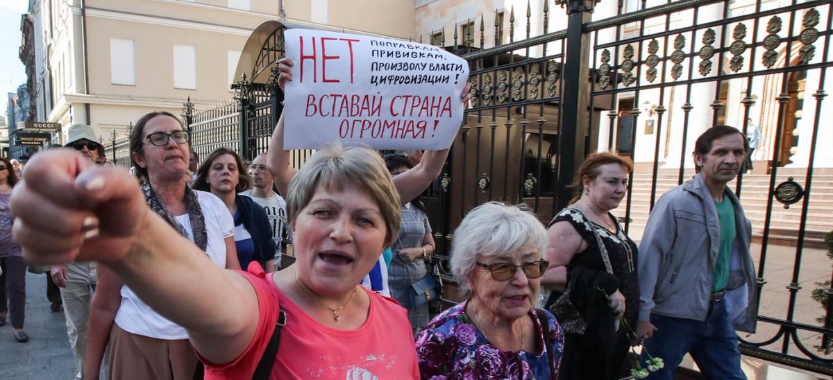 Why do the Communists protests the vaccination? Well, obviously because it's hugely unpopular in the regions. In Moscow very many comply. But go 2-3 hours in literally any direction by train, and you will see nearly universal disobedience