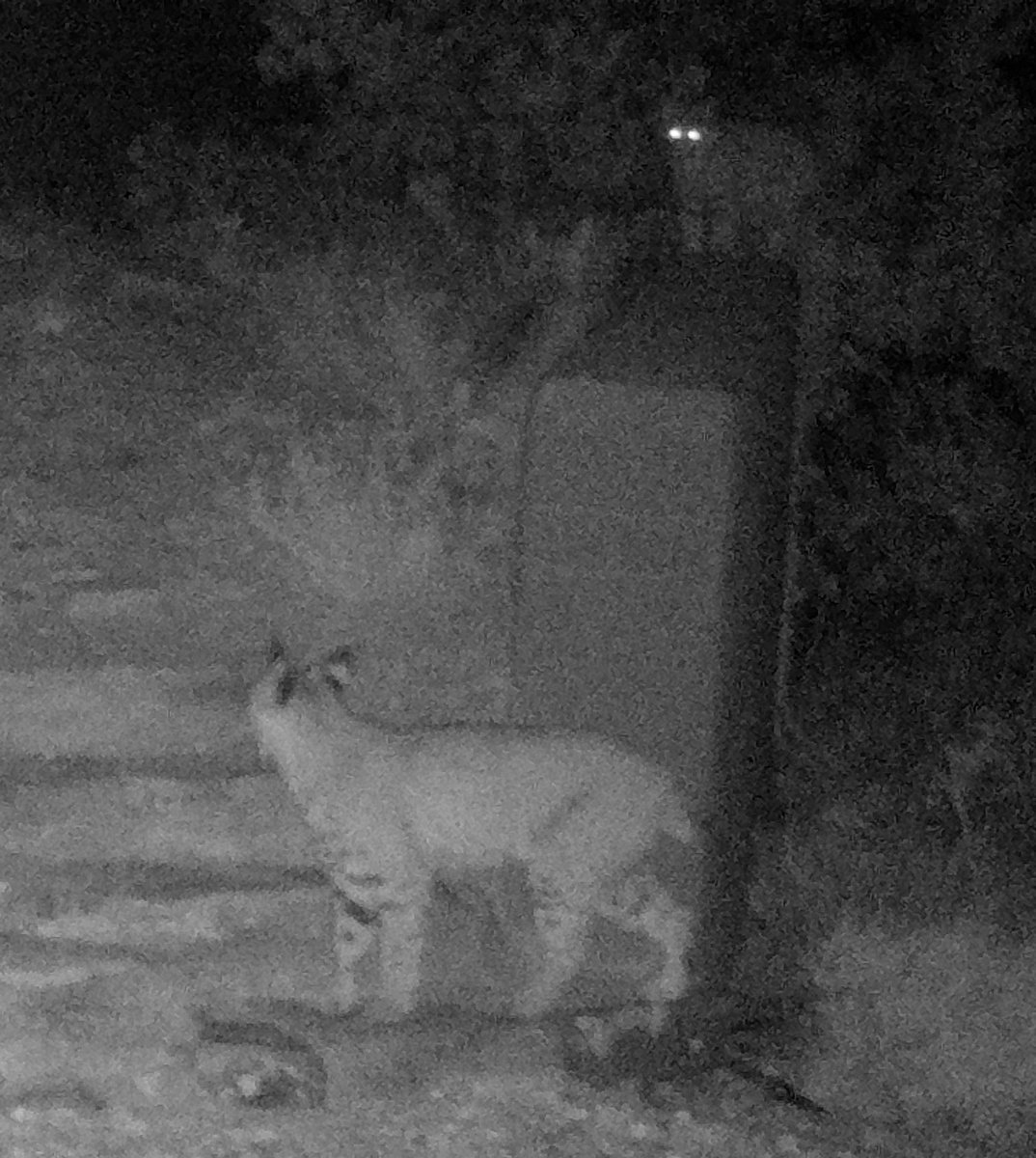 Naturecam photos from yesterday and early this morning. I think the camera is turned off, but I also think I won't go out for a while. The bobcat is afraid of me, particularly when I shout and make myself big, but not taking chances.