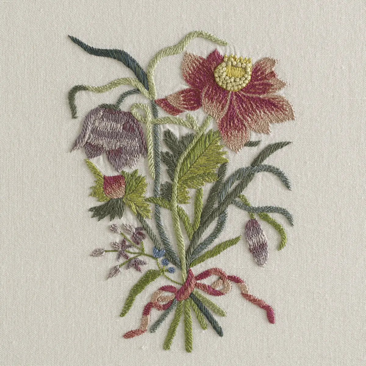 Los bordados de este vestido del siglo XVIII no son flores corrientes. Su diseño se inspiró en la obra «Neues Blumenbuch» (1675-80) de la artista y naturalista Maria Sibylla Merian.