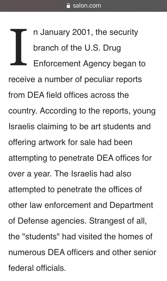According to the reports, young Israelis claiming to be art students and offering artwork for sale had been attempting to penetrate DEA offices for over a year