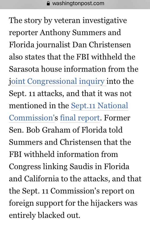 The story…also states that the FBI withheld the Sarasota house information from the joint Congressional inquiry into the Sept. 11 attacks, and that it was not mentioned in the Sept.11 National Commission's final report.