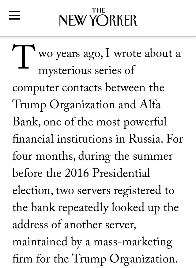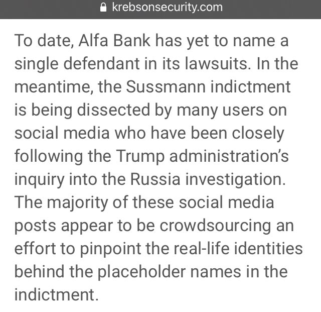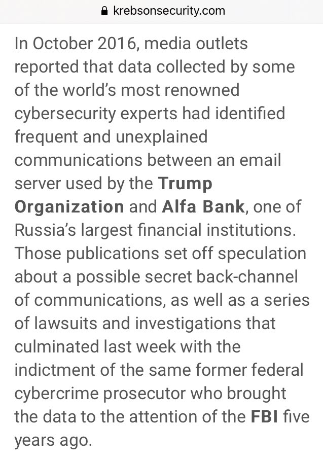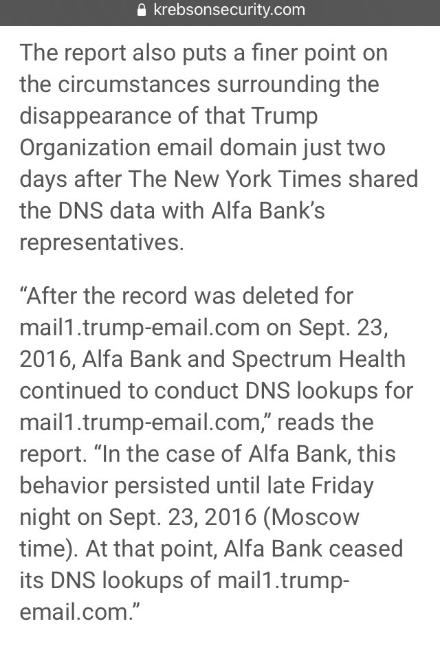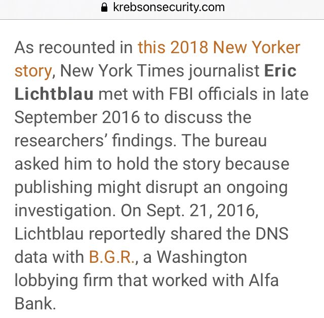 **Also Side Note: It sure was nice of the NYT to tip off Alfa Bank, IMMEDIATELY after being asked by the FBI not to disrupt an ongoing investigation. 🤔
