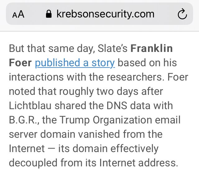 Foer noted that roughly two days after Lichtblau shared the DNS data with B.G.R., the Trump Organization email server domain vanished from the Internet — its domain effectively decoupled from its Internet address. 🔥🔥