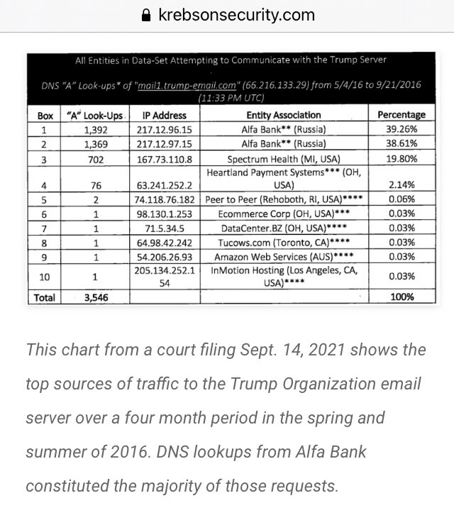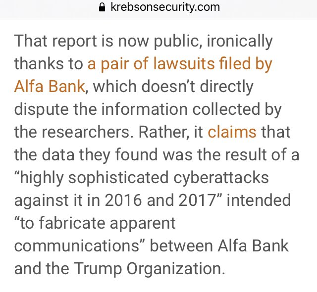 ➡️➡️ That report is now public, ironically thanks to a pair of lawsuits filed by Alfa Bank, which doesn’t directly dispute the information collected by the researchers. ⬅️⬅️