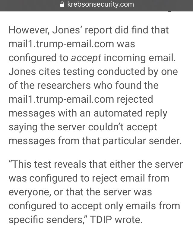 🔥🔥🔥Jones cites testing conducted by one of the researchers who found the mail1.trump-email dot com rejected messages with an automated reply saying the server couldn’t accept messages from that particular sender.