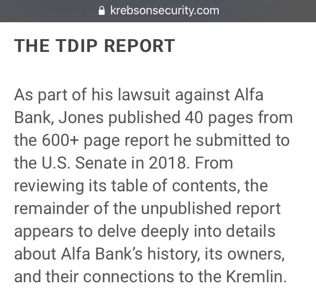 As part of his lawsuit against Alfa Bank, Jones published 40 pages from the 600+ page report he submitted to the U.S. Senate in 2018.