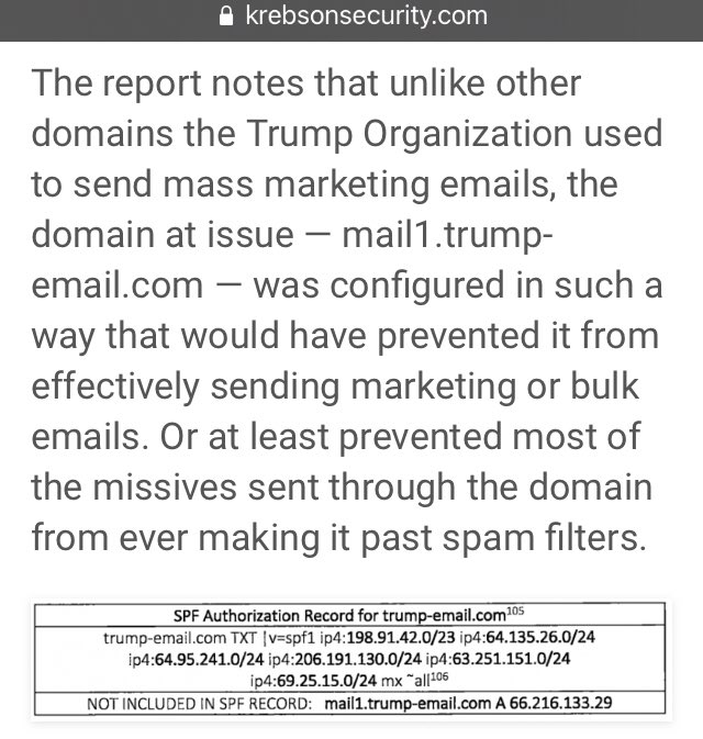 🔥🔥🔥The report notes that unlike other domains the Trump Organization used to send mass marketing emails, the domain at issue — mail1.trump-email dot com — was configured in such a way that would have prevented it from effectively sending marketing or bulk emails.