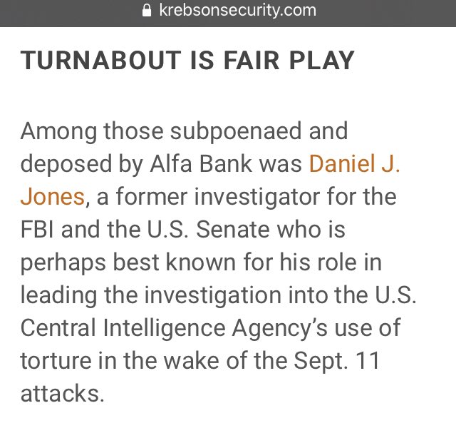 Among those subpoenaed & deposed by Alfa Bank was Daniel J. Jones, former investigator for the FBI & the U.S. Senate who is perhaps best known for his role in leading the investigation into the U.S. Central Intelligence Agency’s use of torture in the wake of the Sept. 11 attacks.