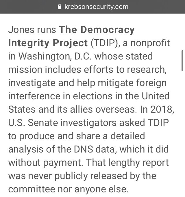 In 2018, U.S. Senate investigators asked TDIP to produce and share a detailed analysis of the DNS data, which it did without payment. That lengthy report was never publicly released by the committee nor anyone else.