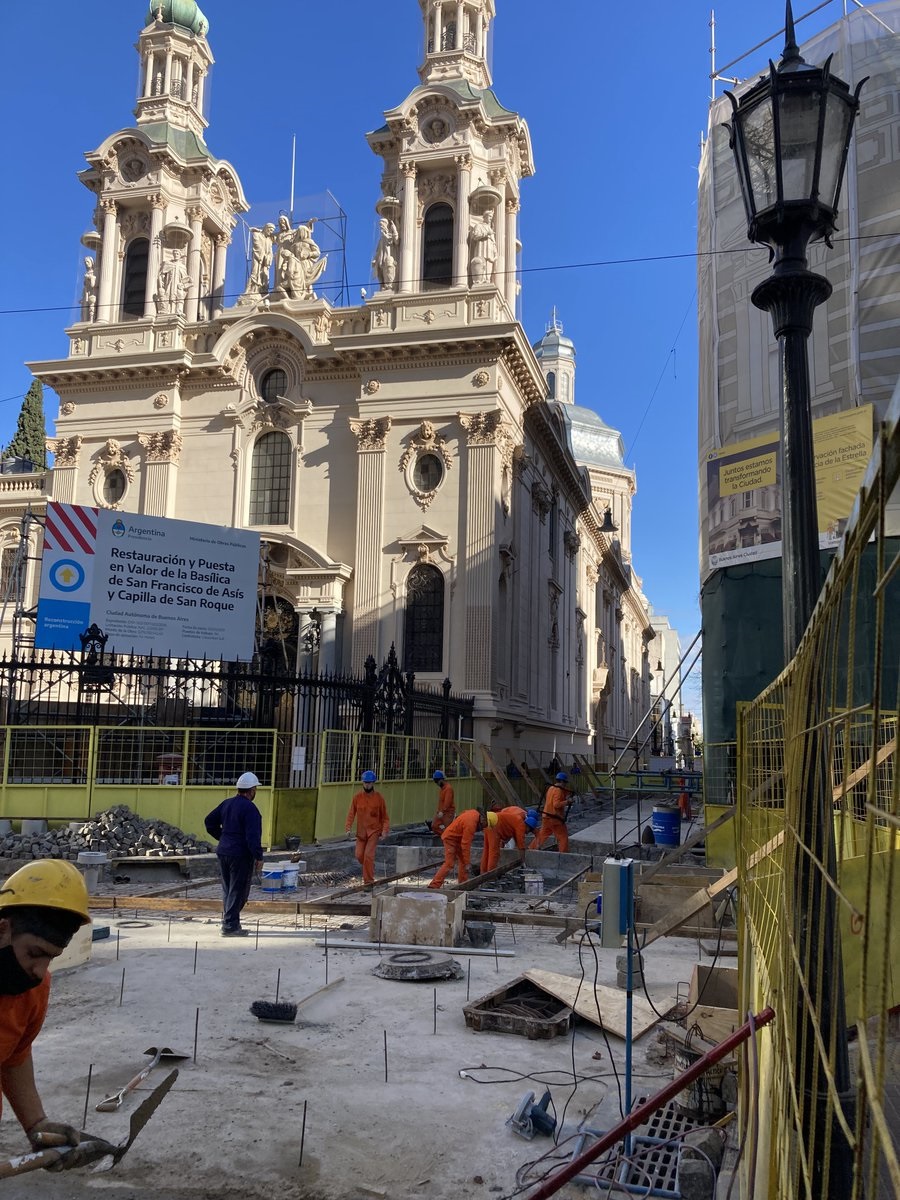 a introducción de elementos extraños como ¨bolardos¨ y rejillas de desagüe en un entorno de altísima significación histórica como la Iglesia de San Francisco,