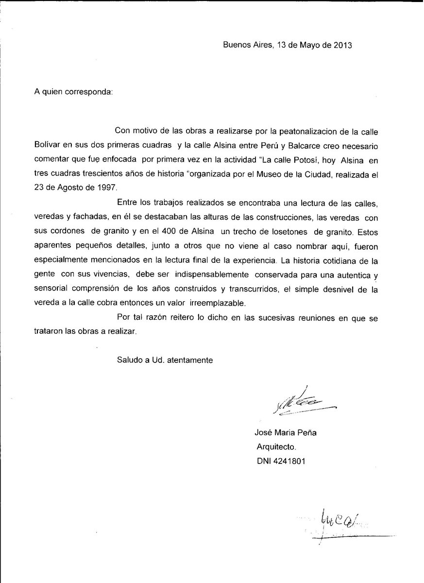 Además, varios arquitectos especializados en patrimonio publicaron su descontento; el Arq. Luis María Peña, el propio fundador del museo de la ciudad dejó su opinión sobre la nivelación de la calle Bolívar antes de fallecer.