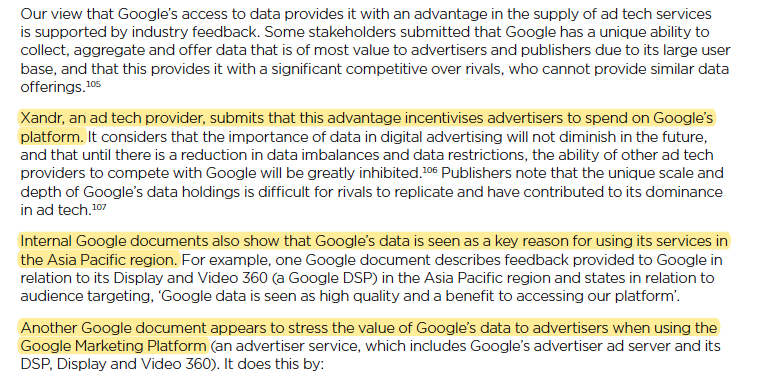 Interesting. Looks like ACCC enhanced its data + antitrust concerns from two sources: (1) Xandr, whose former CEO and founder testified on Google's anticompetitive activities, reconfirms power in data, (2) internal Google docs from ACCC requests. They. Sell. It. That. Way. /9