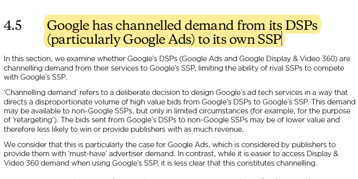 ACCC also clearly understands issues of "anti-competitive" tying by Google in which it uses its overwhelming market power in aggregating demand (advertisers spending power) in order to aggregate and maintain marker power on the supply side (SSPs). This mirrors state AGs suit. /7