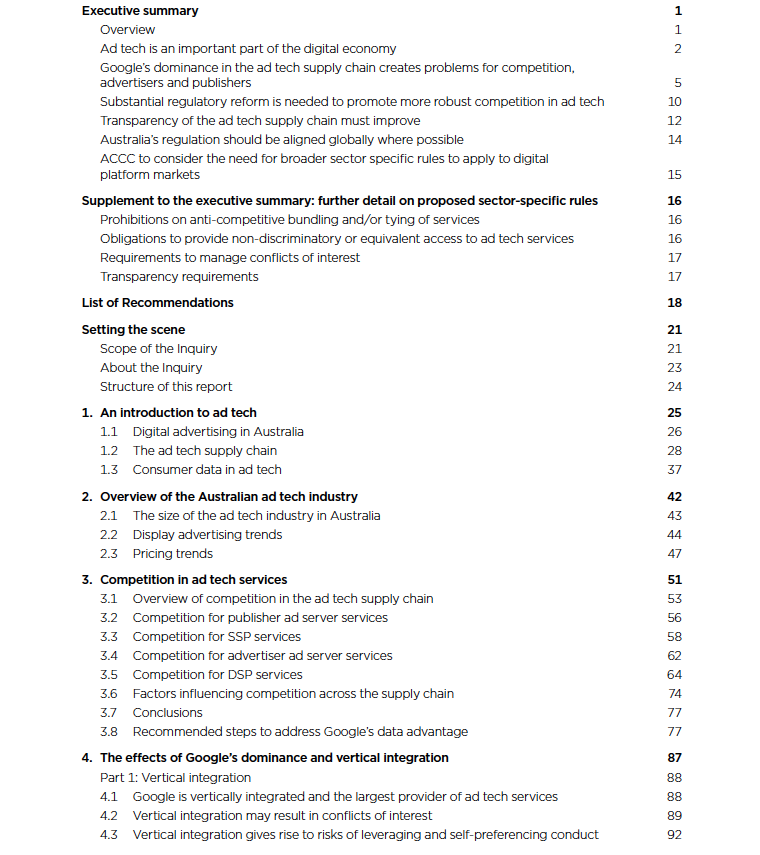 Just-released 200pg final report from Australia's competition and consumer protection regulator states emphatically Google's dominance in adtech harms both businesses and consumers. This table explains to any layperson why. #DominatingAllSidesOfMarket /1