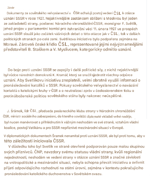 I díky vytrvalý aktivitě Fr. Světlíka a podpoře ČSL se podařilo Benešovi dosáhnout nejen navázání oficiálních diplomatickejch vztahů, ale i uzavření vojensko-politickýho spojeneckýho paktu se SSSR v půli 30. let.