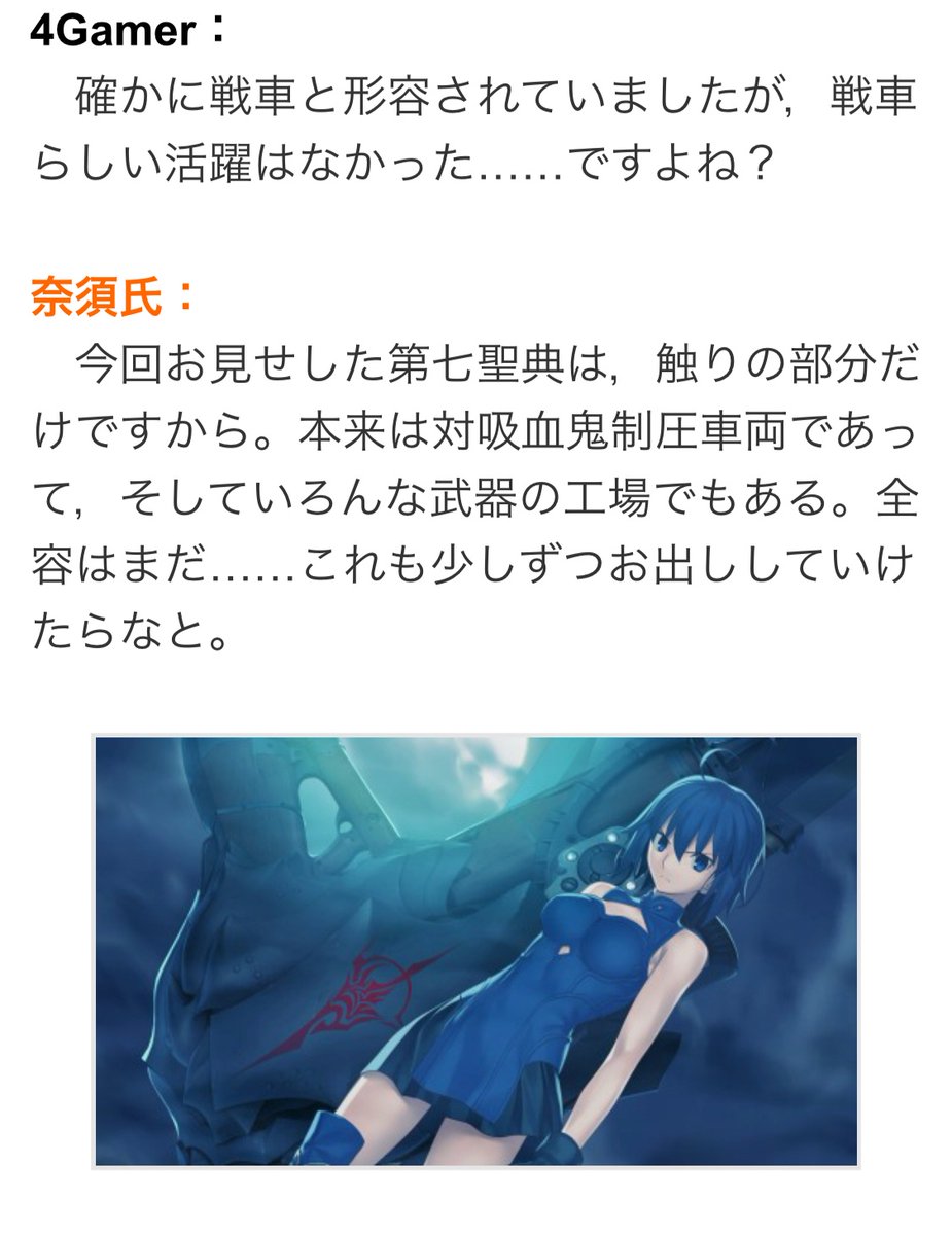 > 奈須氏:あります。もちろん彼女のぶんも。