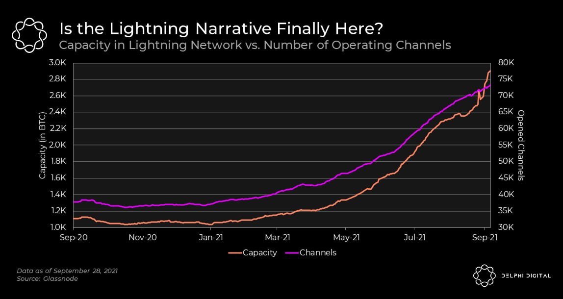 5/ The Lightning Network is as lively as its ever been. Payment facilitation capacity, or the total amount of bitcoin on the network, is now up to 2,900 BTC.