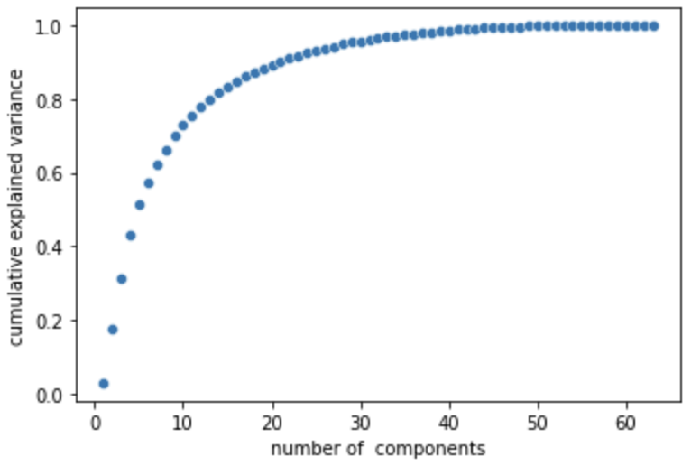 If you plot the cumulative explained variance with respect to the number of components, you will see that 5 components will explain ~50% of the variance.