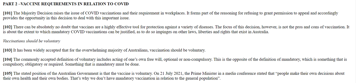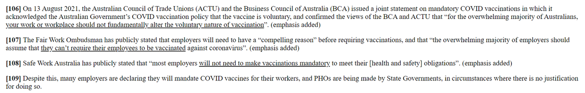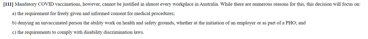 2/ Jest to długi dokument ale wart przeczytania bo niesie skutki prawne dla wszystkich pracowników, którzy są zmuszani do szczepień. Sprawa tyczy skargi p. Kimber na Sapphire Coast Community Aged Care Ltd prowadzącą placówki opieki nad osobami starszymi w Nowej Południowej Walii,