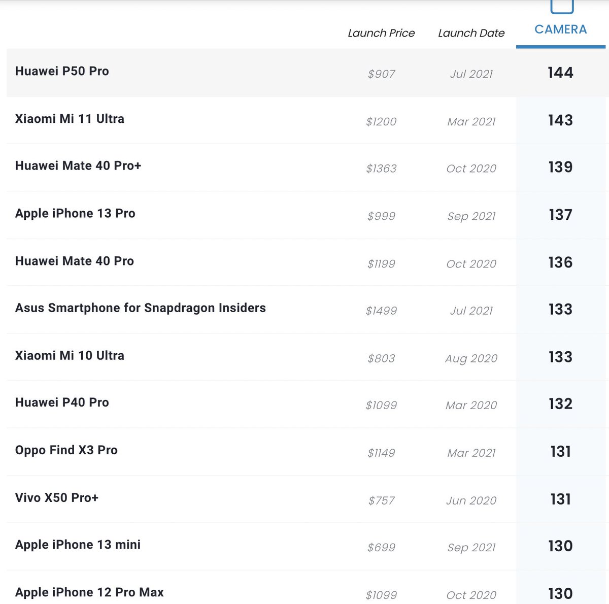 5- Esto va a parecer irrelevante, es la clasificación de las mejores cámaras de smartphones por orden de calidad según DXOMARK (desprestigiados para algunos) pero que, si uno lee entre líneas la información puede detectar varios problemas que tiene Android frente a Apple.
