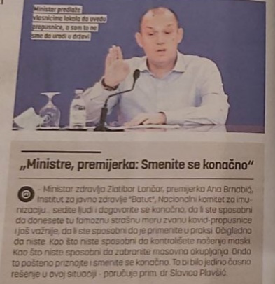 Ministar zdravlja Lončar, Premijerka Brnabić kao šefica Kriznog štaba, Institut za javno⬇️