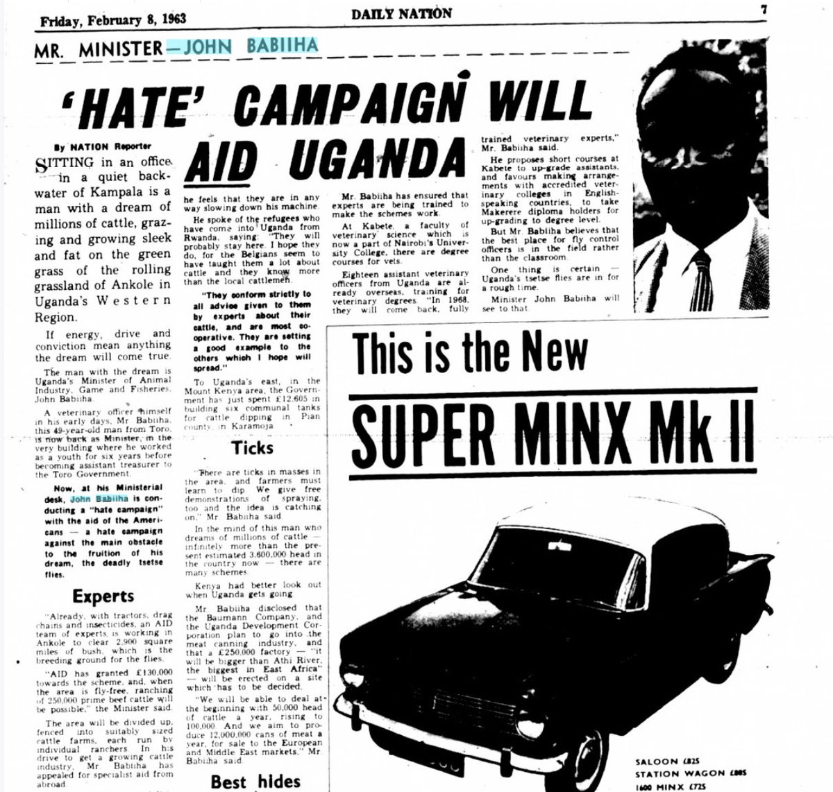 4/ After Uganda's independence PM Milton Obote nominated Babiiha to Parliament & made him Minister of Animal Industry, Game & Fisheries.