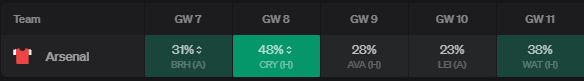 Another popular budget option is Watford's talisman Sarr (£6.3m). But he doesn't have the best fixture runs from GW8 onwards.